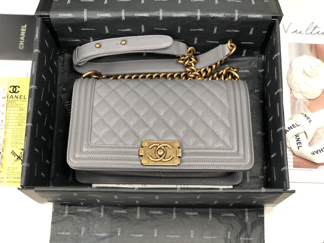 CHANEL Caviar Quilted Medium Boy Flap Light Grey
