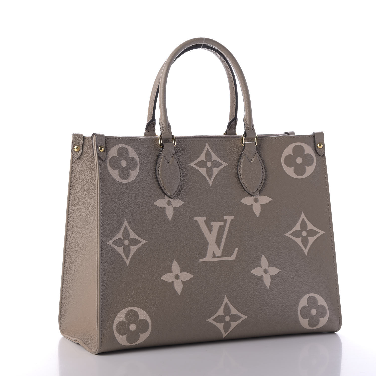 Base Length: 12.75 inHeight: 11.5 inWidth: 6.5 inDrop: 8 inThis beautiful tote is crafted of monogram-embossed leather in ivory. The bag features tall leather handles and polished gold hardware. The top is open to a spacious dark brown microfiber interior with a hanging zipper pocket and a matching ..
