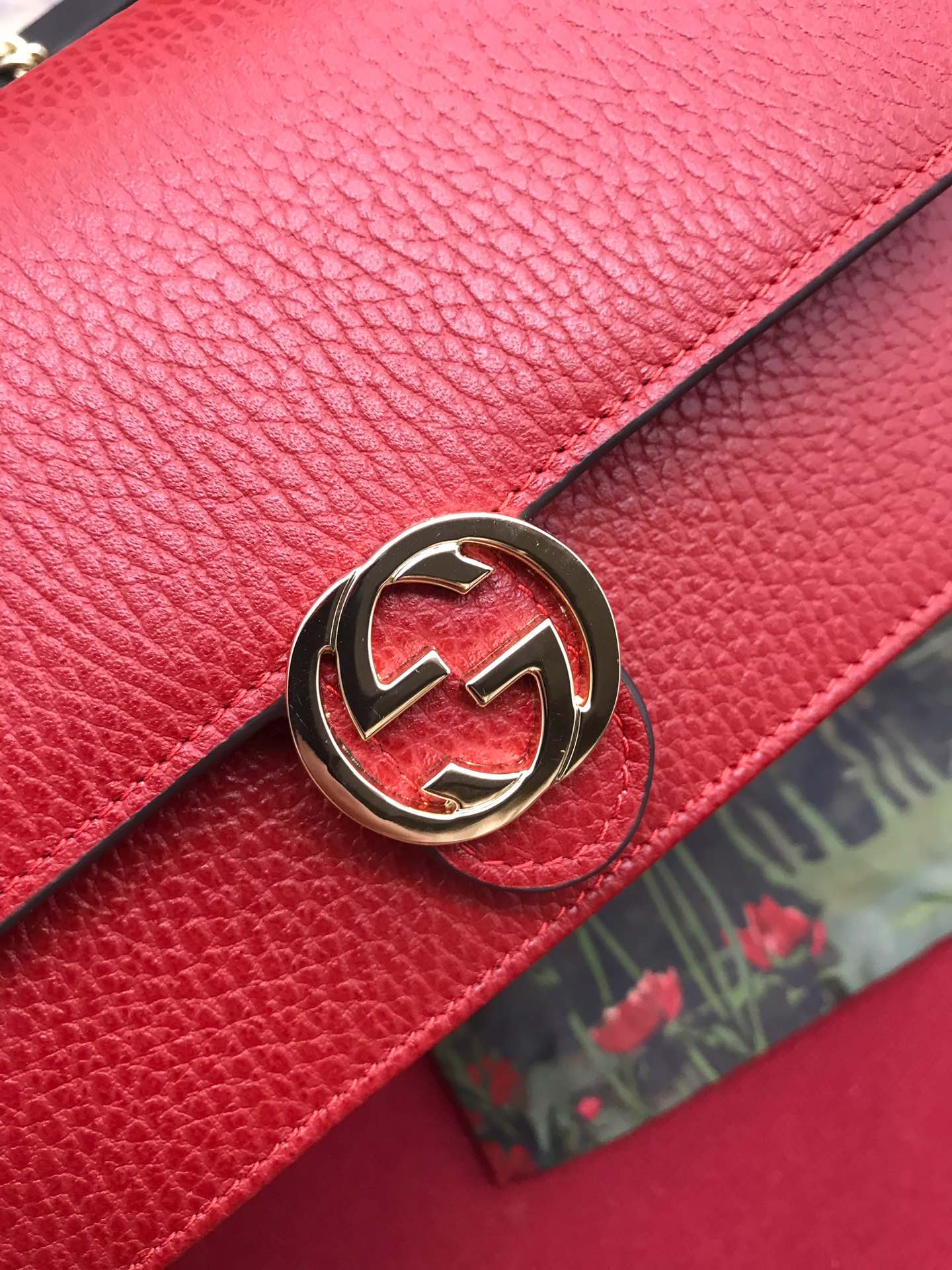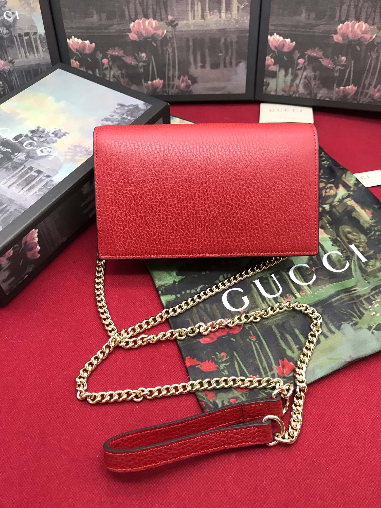 GUCCI Dollar Calfskin Interlocking G Chain Wallet Red